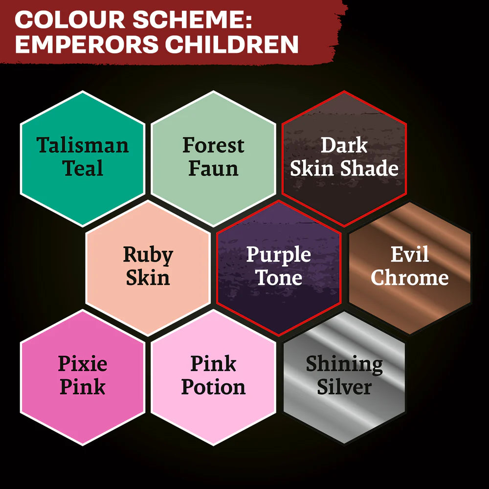 Bring your Emperor’s Children to life with bold colours, rich contrast, and striking metallics. This curated paint bundle makes achieving their signature hues effortless—whether you’re a seasoned painter or just starting out. Pair it with Phil the Glacial Geek’s YouTube tutorial and follow along step by step.