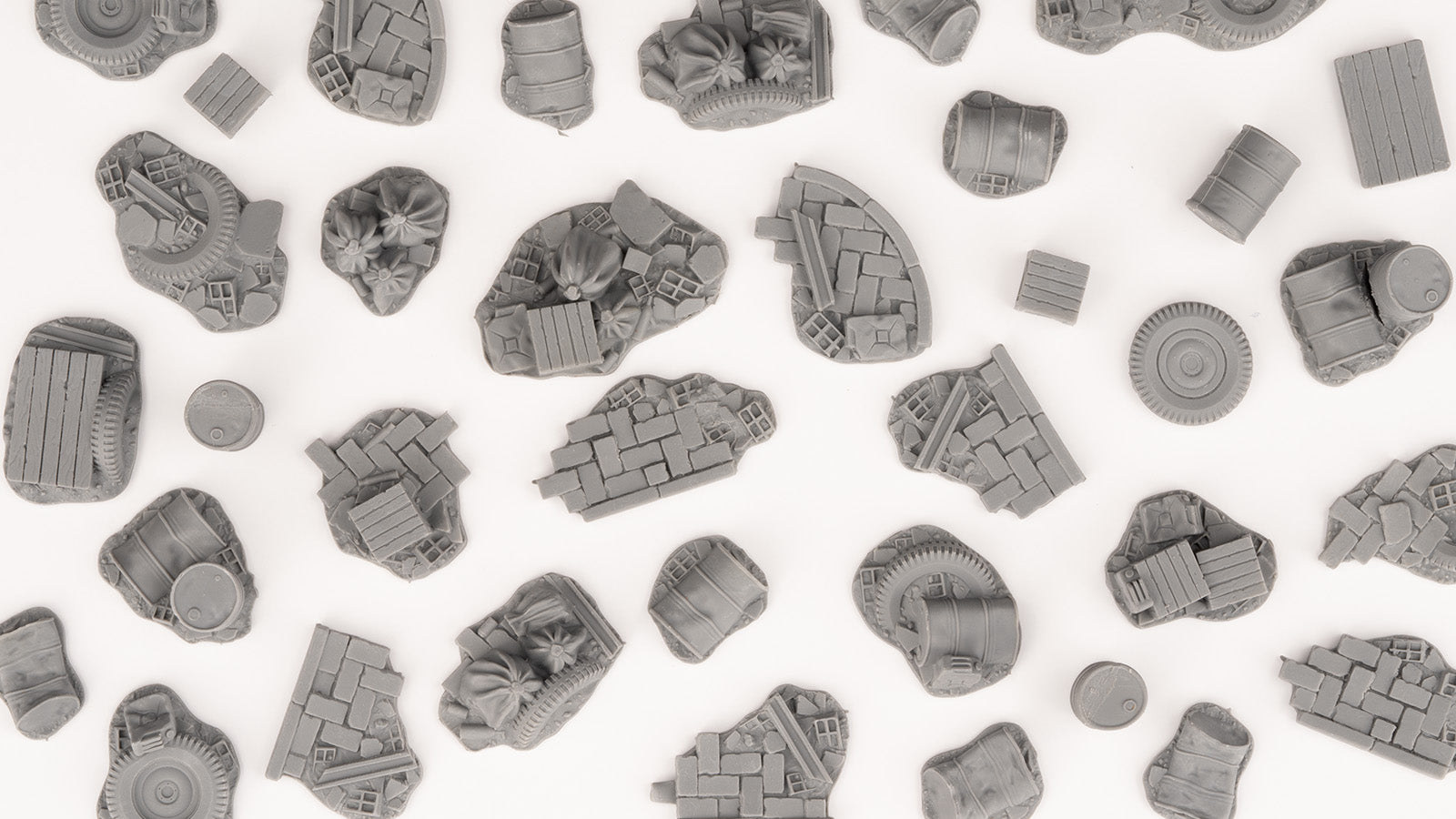 Basing Bits Urban Warfare are scaled replicas of urban war background props, for all times, from Great Wars to present and future conflicts. Lost wheels, fuel drums, broken asphalt and other debris will provide the right framework for your urban battles and post combat scenarios.