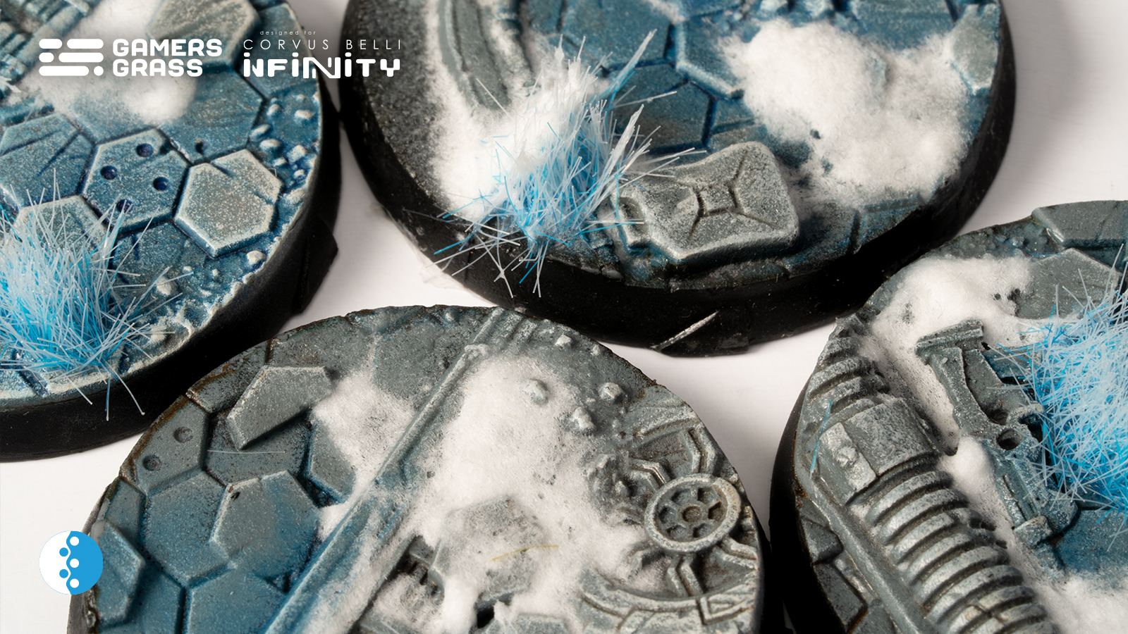 Featuring Line of Fire (LoF) marks, the bases are designed for "Infinity" by Corvus Belli.
